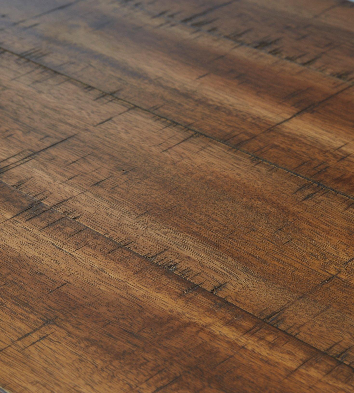 Make the most of your space with this versatile dining set. The counter-height table is long and lean, while four swivel bar stools add just the right amount of urban cool. Warm wood tones and cool gunmetal accents work in tandem to create a sophisticated industrial vibe. And did we mention versatility? You'll love using this ensemble as a workspace or dining table, against a wall or behind a sofa.